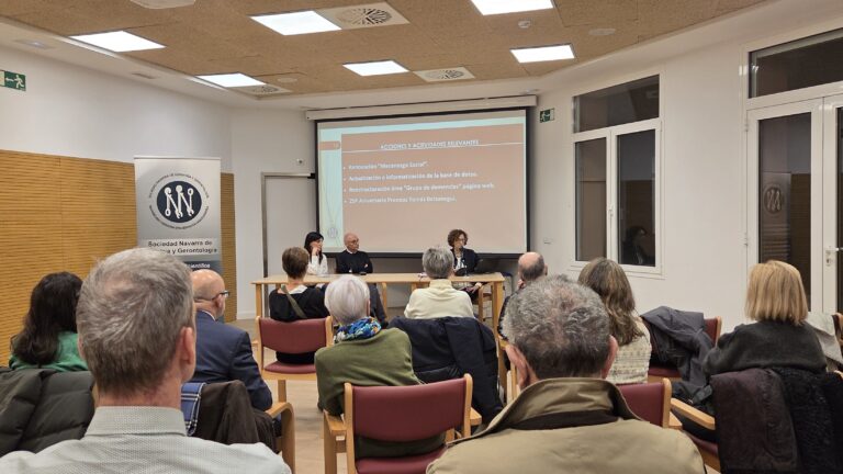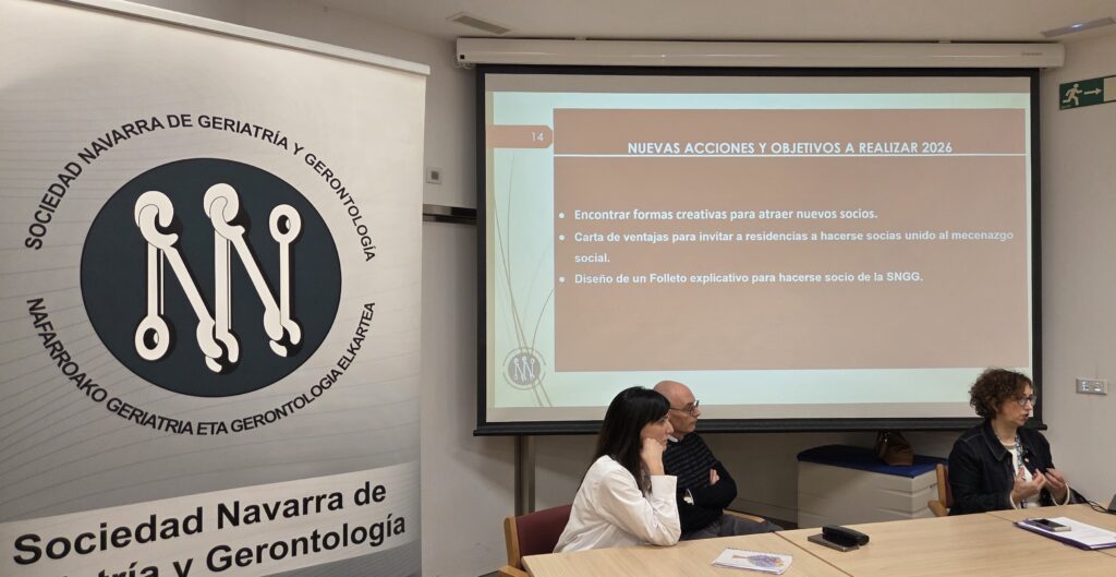 La Sociedad Navarra de Geriatría y Gerontología (SNGG) celebró, a las 19:30 horas en segunda convocatoria, su Asamblea General Ordinaria, desarrollada en modalidad presencial y virtual. En total, participaron 15 personas socias de forma presencial, una persona jurídica y una socia conectada online. La reunión tuvo lugar en la Casa de Misericordia de Pamplona.
