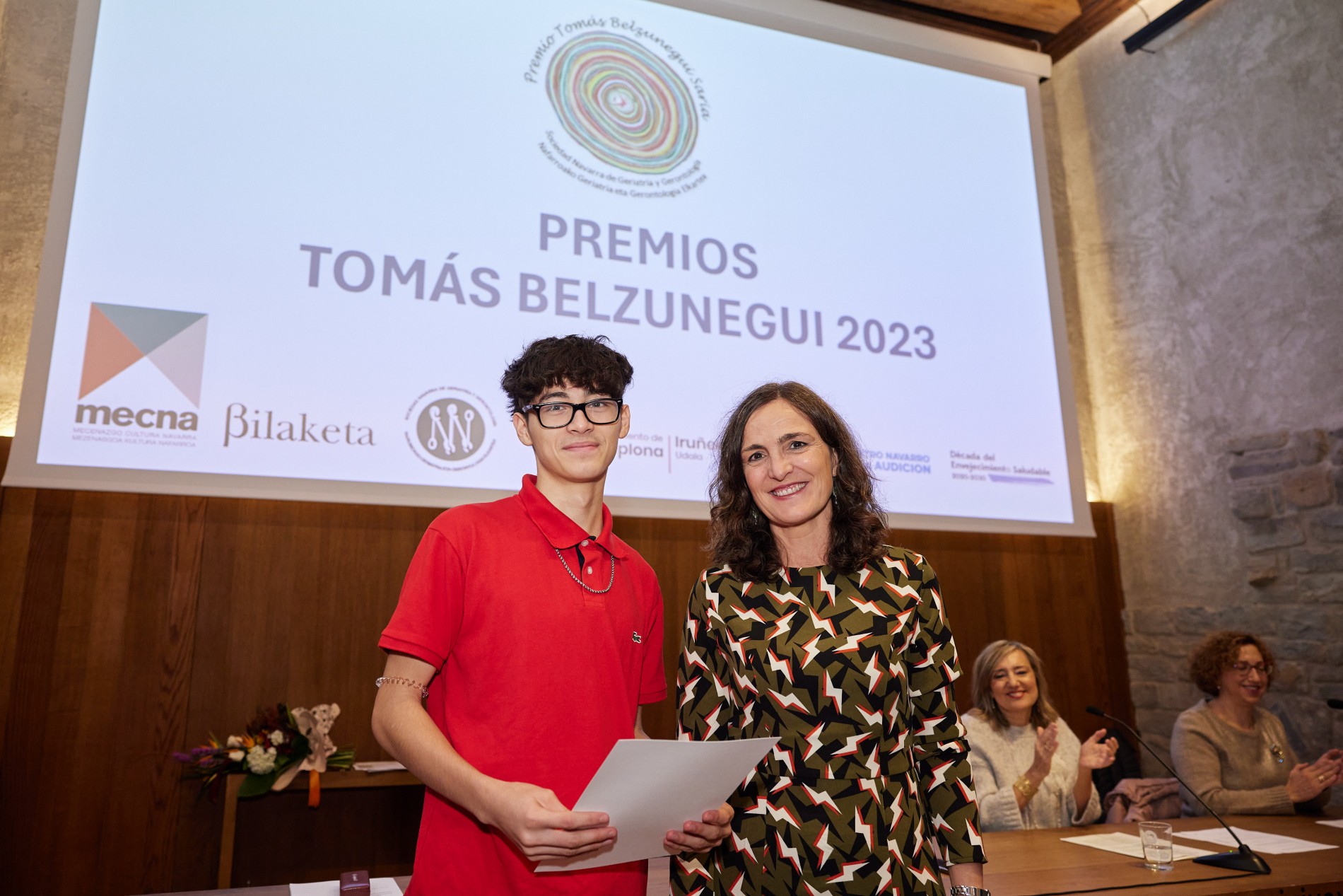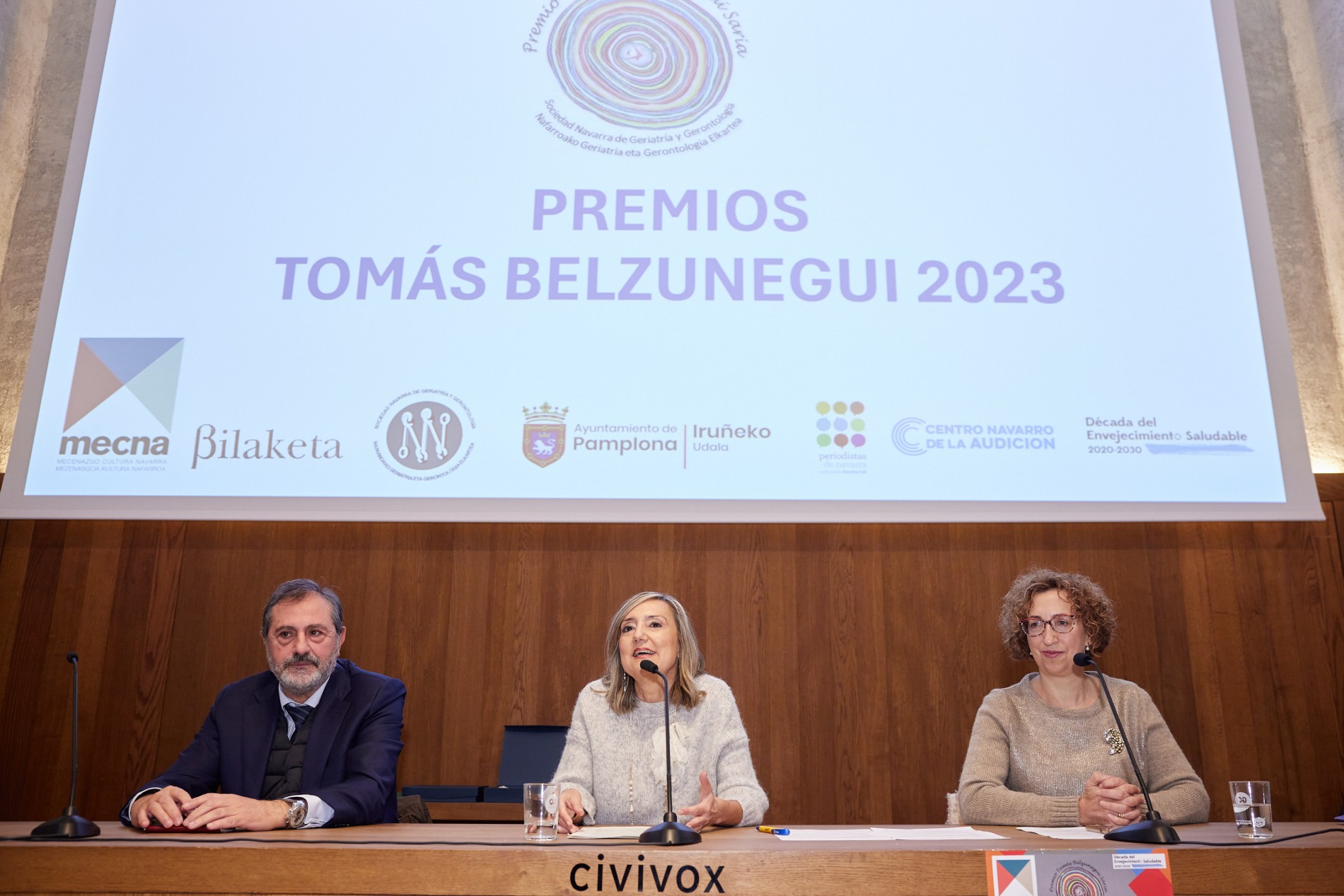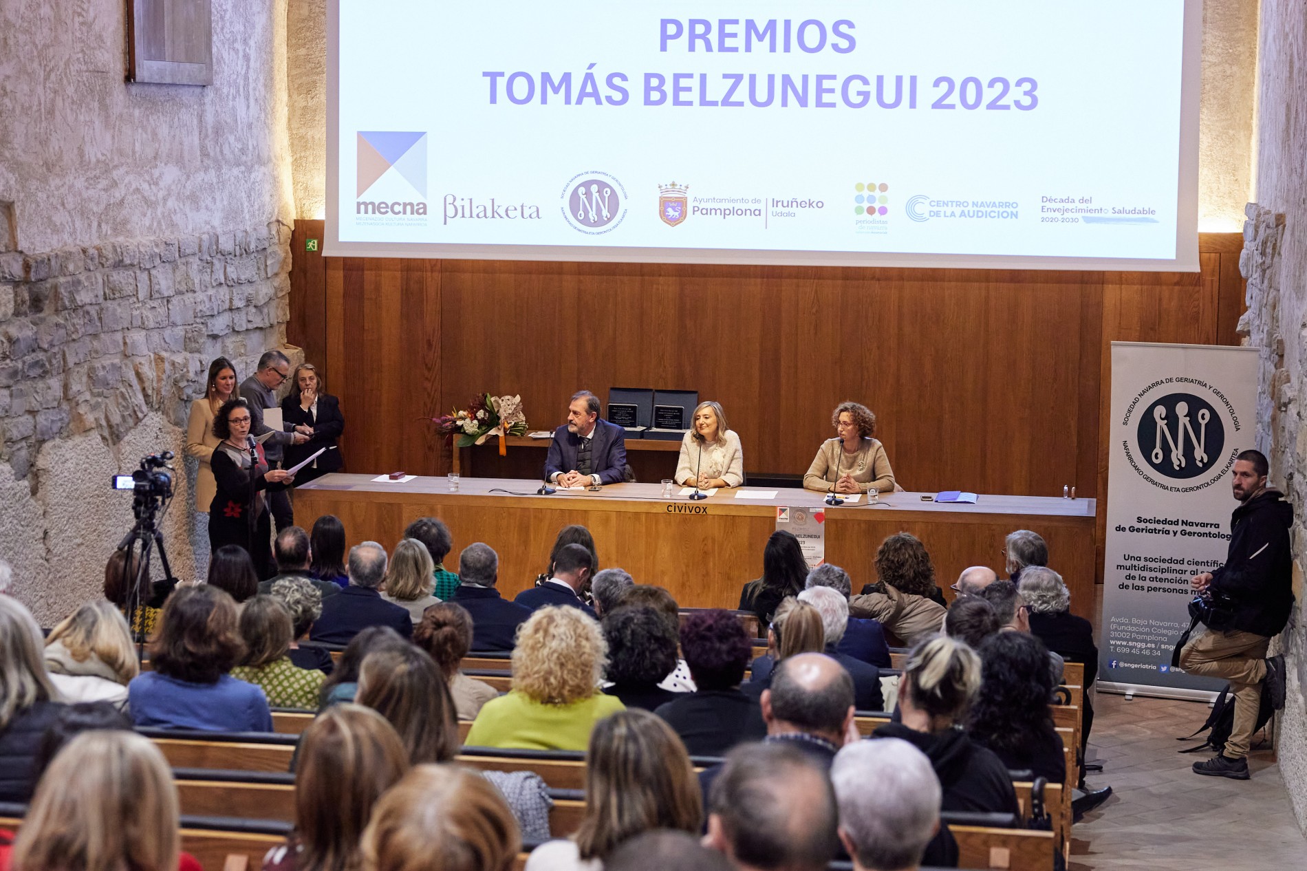 El Palacio de Condestable ha sido el escenario esta mañana de la entrega de los Premios Tomás Belzunegui 2023, unos galardones con los que la Sociedad Navarra de Geriatría y Gerontología (SNGG) reconoce desde el año 2000 a los trabajos y proyectos que fomentan de una imagen positiva de las personas mayores, sin estereotipos ni prejuicios, en una sociedad intergeneracional.