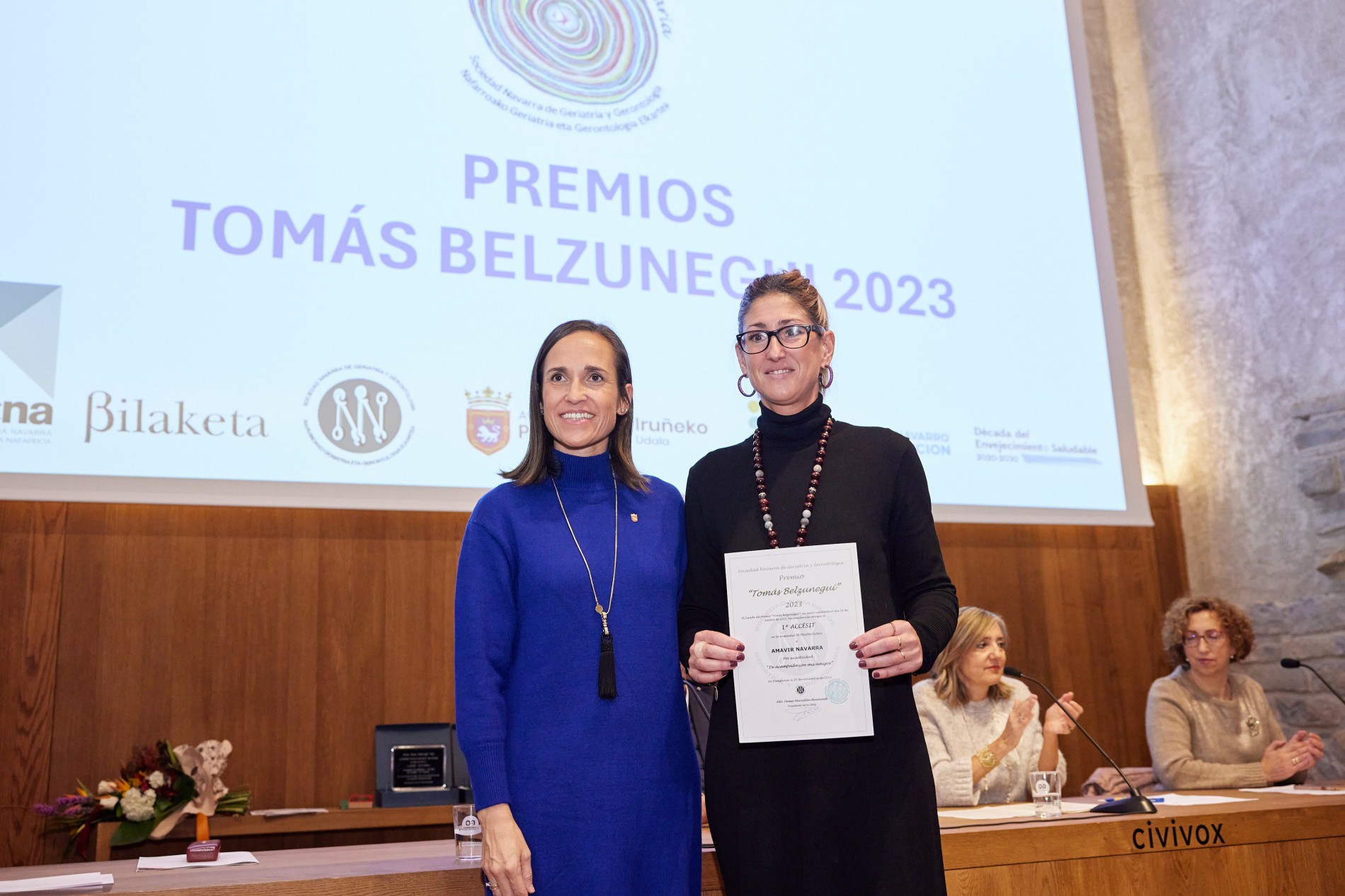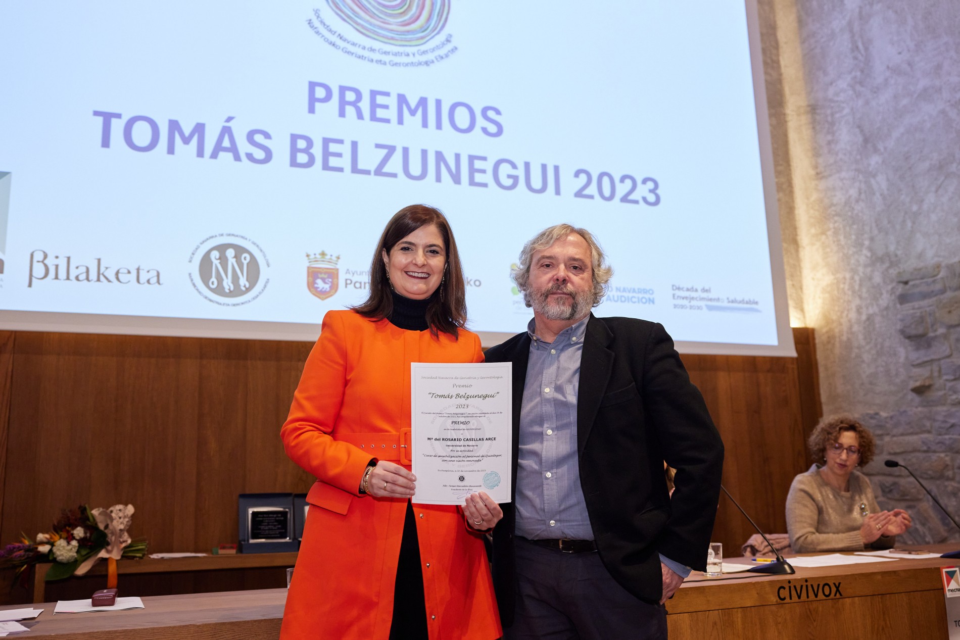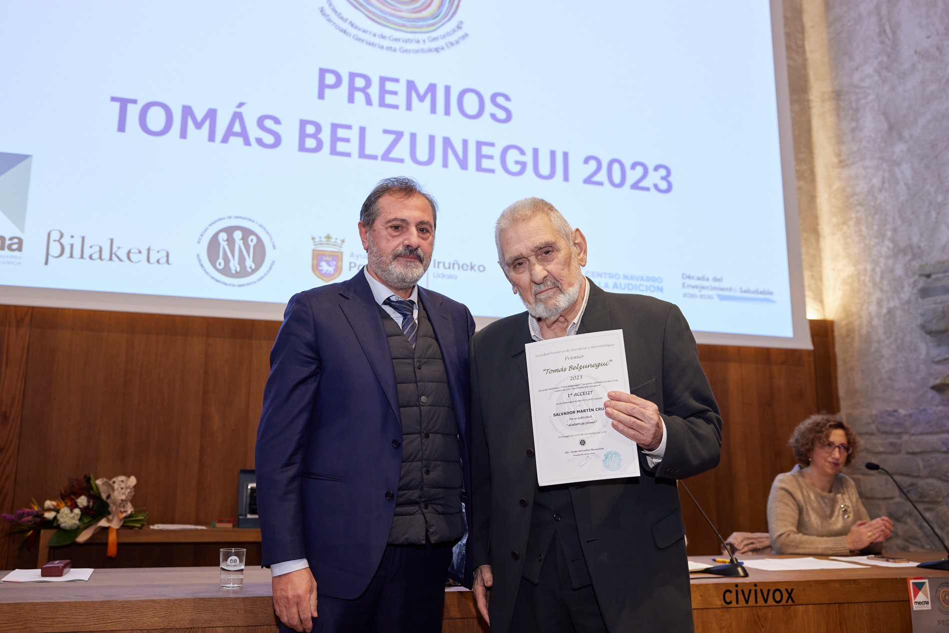 El Palacio de Condestable ha sido el escenario esta mañana de la entrega de los Premios Tomás Belzunegui 2023, unos galardones con los que la Sociedad Navarra de Geriatría y Gerontología (SNGG) reconoce desde el año 2000 a los trabajos y proyectos que fomentan de una imagen positiva de las personas mayores, sin estereotipos ni prejuicios, en una sociedad intergeneracional.