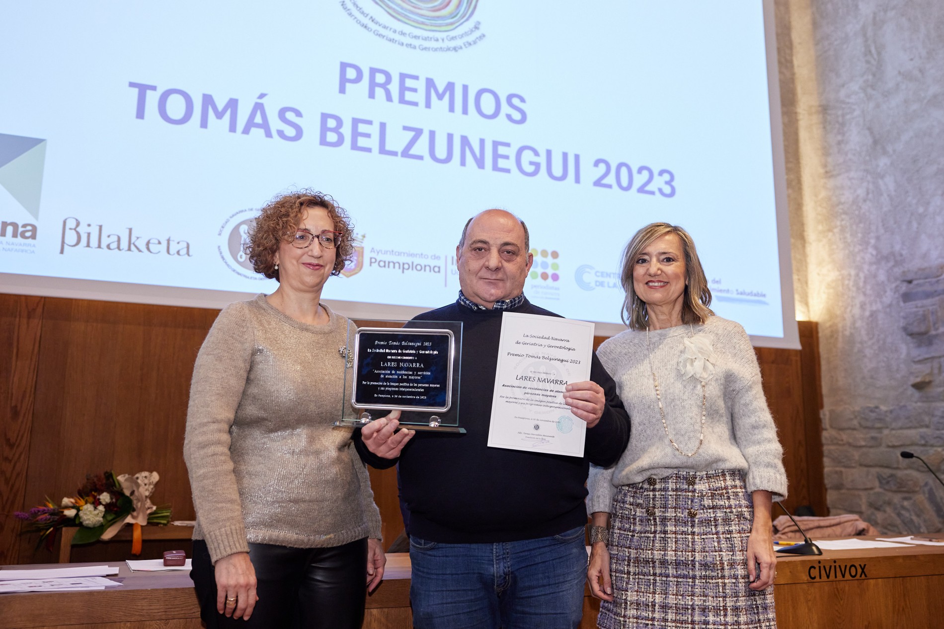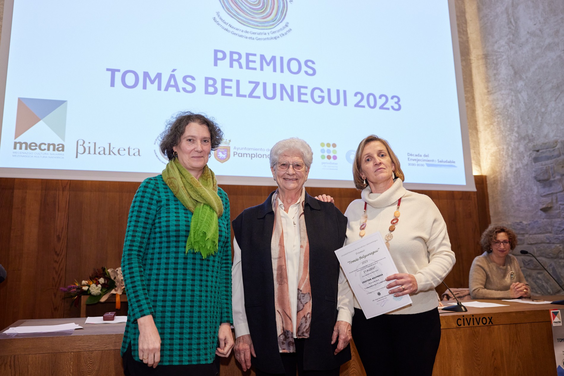 En esta edición se ha entregado también un reconocimiento a Soledad Otano, como madrina de honor que ha sido recogido por su hijo, Silvestre Belzunegui. Además, se ha reconocido la labor de dos entidades: Lares Navarra, asociación de residencias de atención a las personas mayores, y ANEA, Asociación Navarra de Entidades Asistenciales.