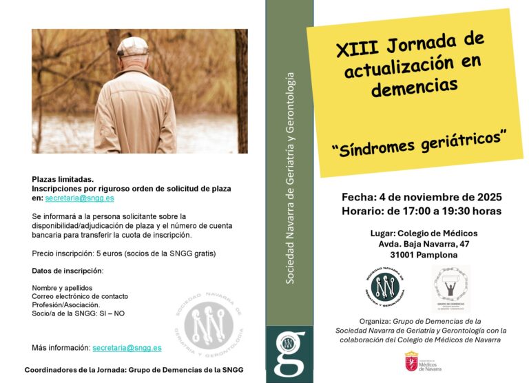 Organiza: Grupo de Demencias de la Sociedad Navarra de Geriatría y Gerontología con la colaboración del Colegio de Médicos de Navarra